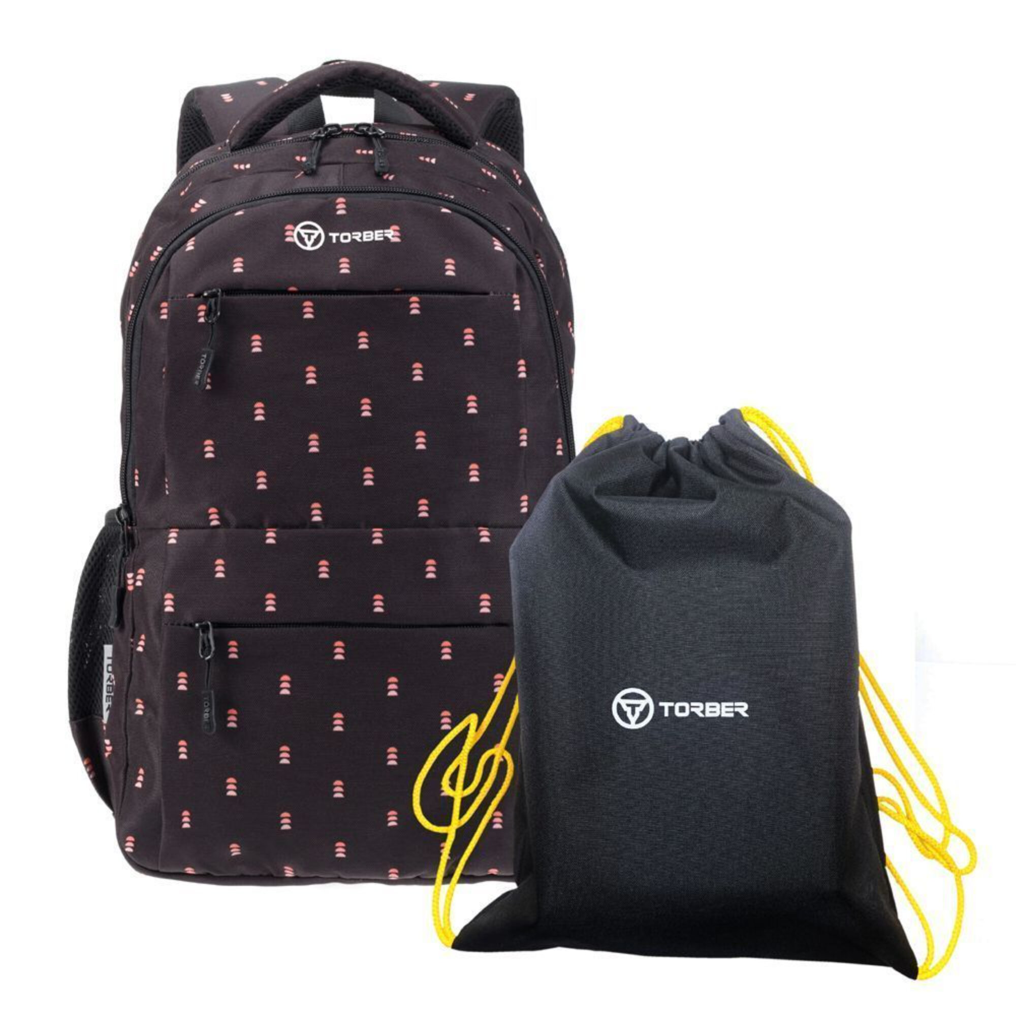 Купить Рюкзак TORBER CLASS X, черный с орнаментом, 45 x 30 x 18 см + Мешок для сменной обуви в подарок! TORBER MR-T2602-22-BLK-M