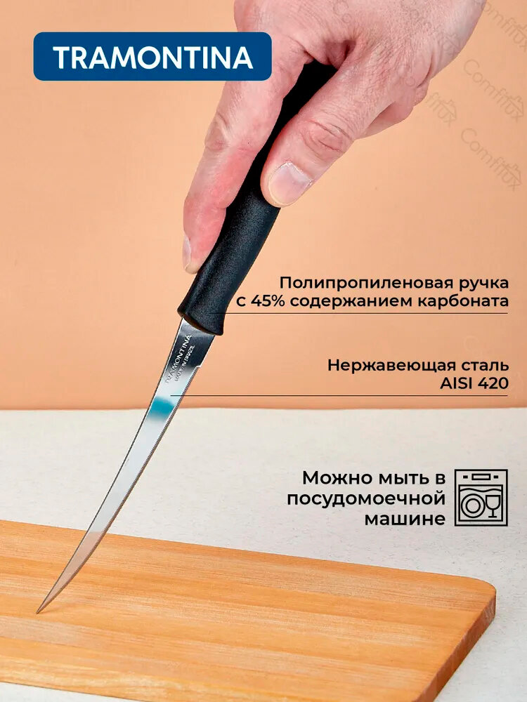 Нож Tramontina Athus для помидоров/цитрусовых, 12,5 см, черный .