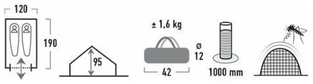 | Водостойкость тента/дна | 1000 / 3000 мм в.ст. |