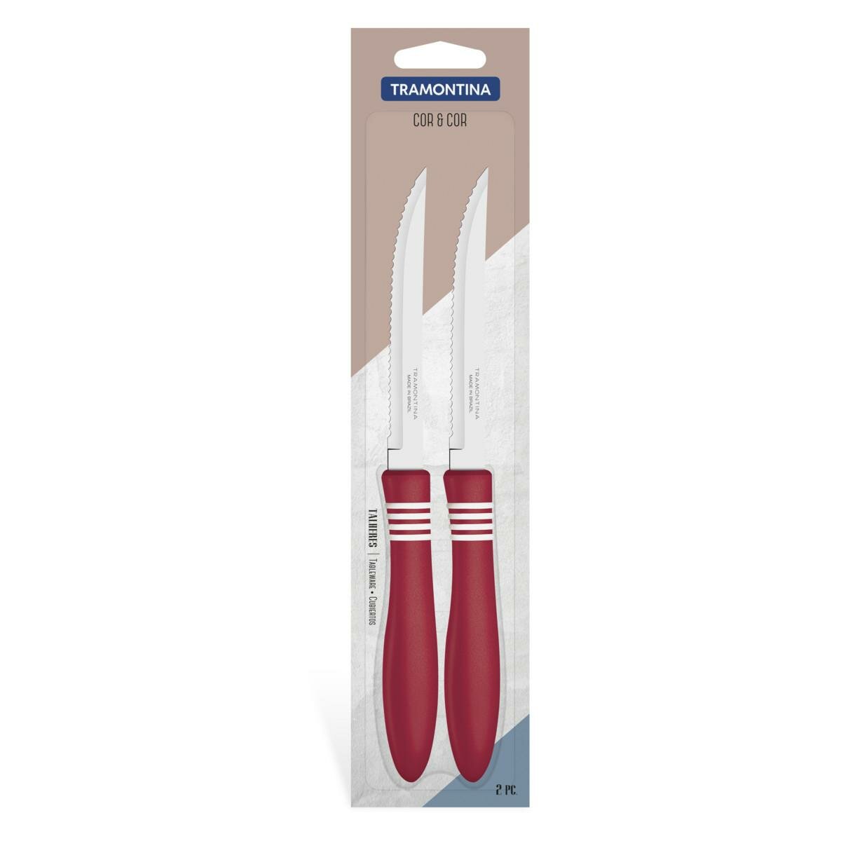Ножи для мяса/стейков Tramontina Cor & Cor 2шт. 13см красн. на блистере