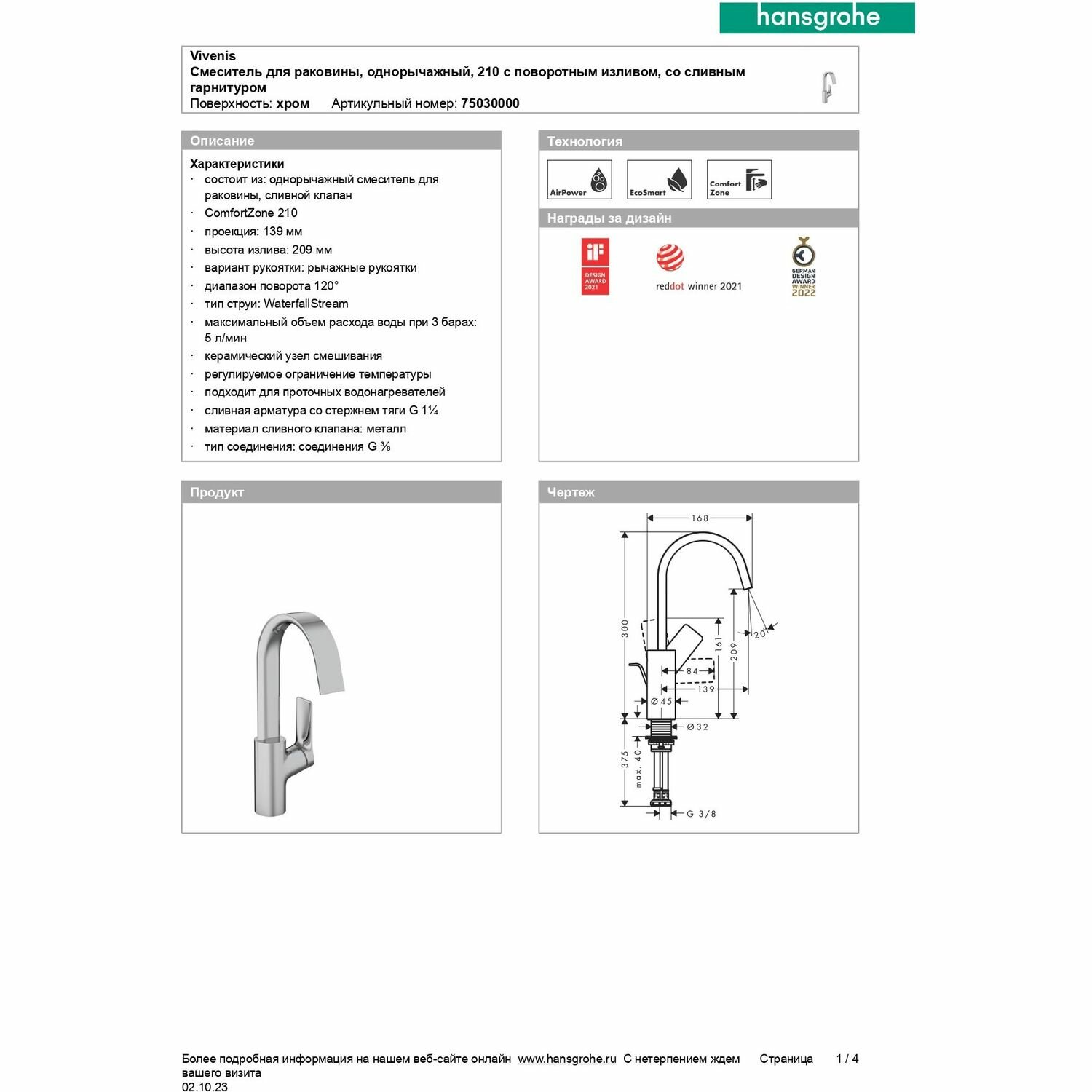 Ниже Вы можете прочитать отзывы на Смеситель для раковины Hansgrohe Vivenis со сливным гарнитуром, ознакомится с подробными характеристиками, посмотреть интересные обзоры и фотографии на Смеситель для раковины Hansgrohe Vivenis со сливным гарнитуром.
