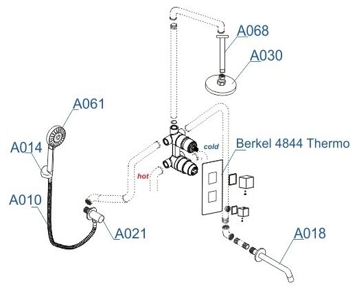 Встраиваемый комплект для ванны с верхней душевой насадкой, лейкой и изливом WasserKRAFT A174868 Thermo интересное: