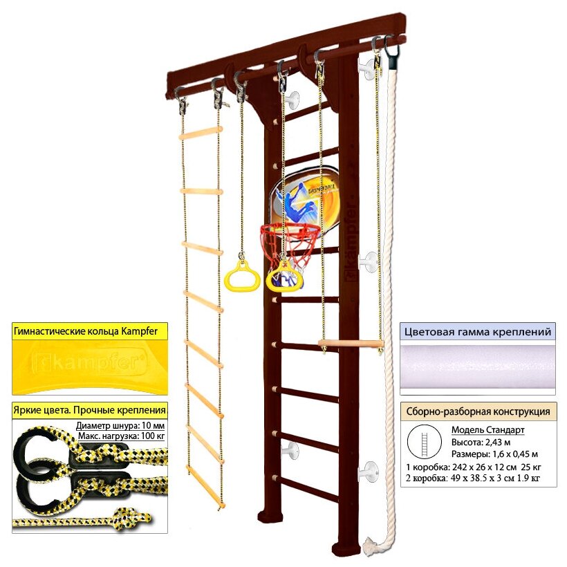 Шведская стенка Kampfer Wooden Ladder Wall Basketball Shield №5 Шоколадный Стандарт, белый интересное: