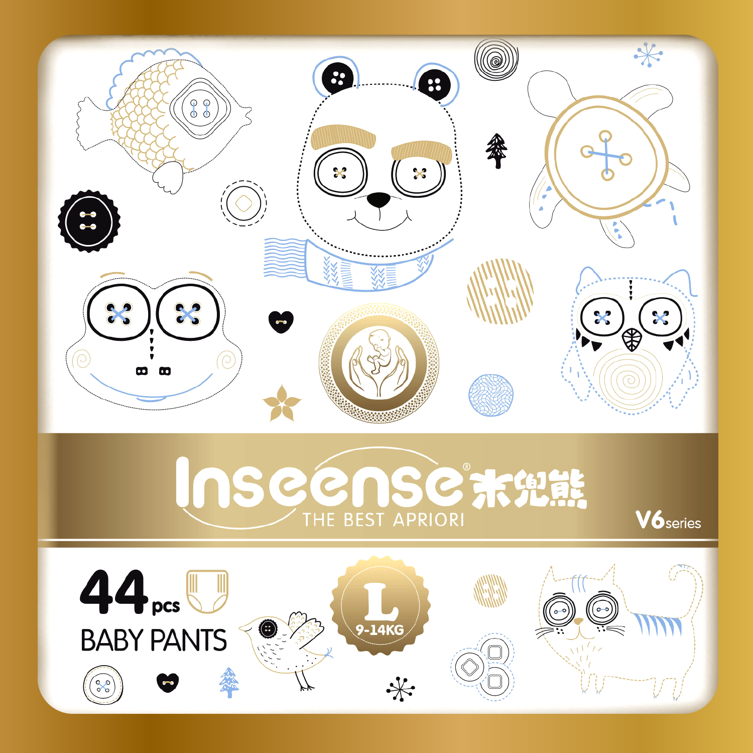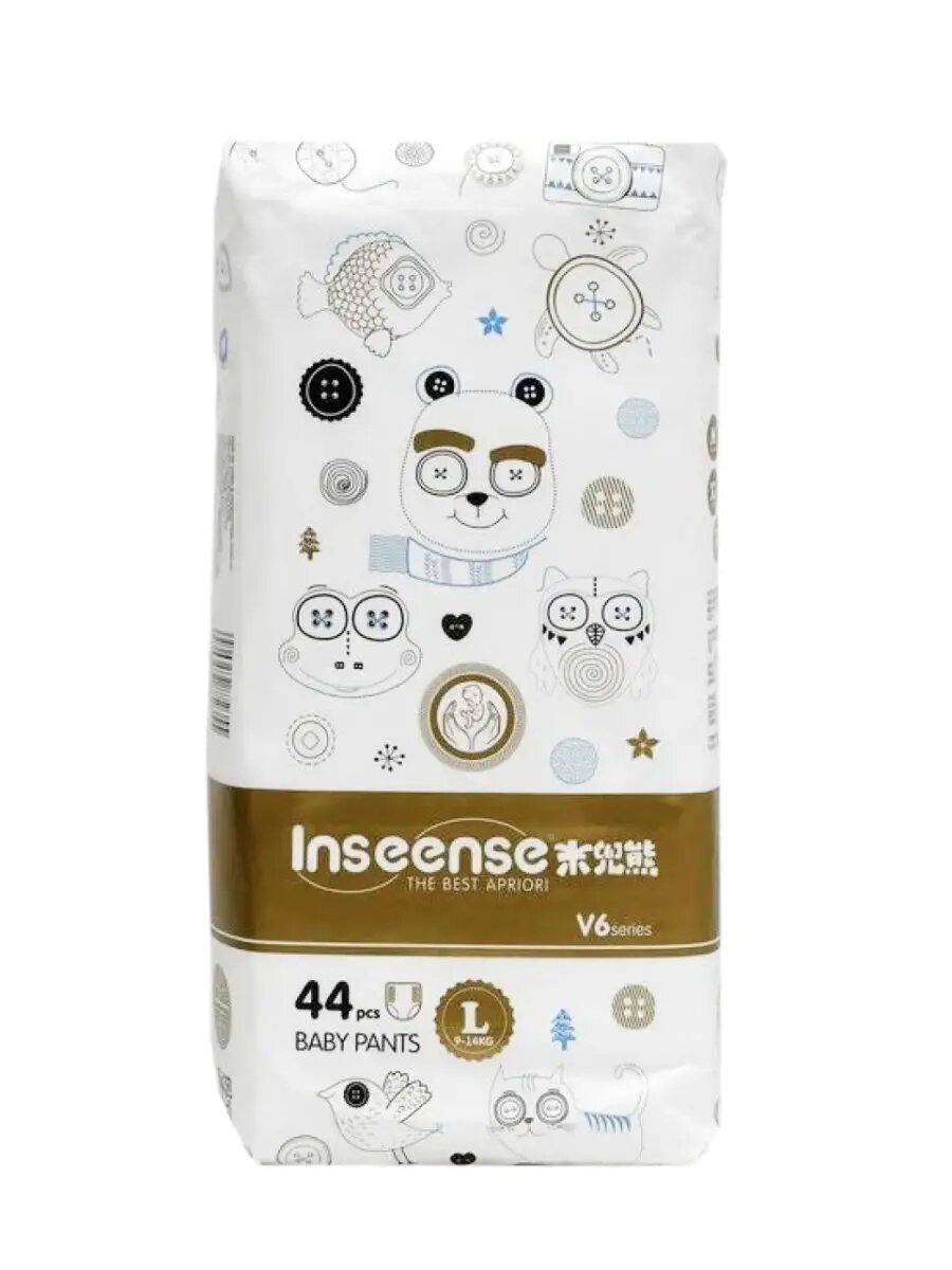 Подгузники-трусики INSEENSE супертонкие V6 L (9-14 кг) 44 шт (золотая упаковка)