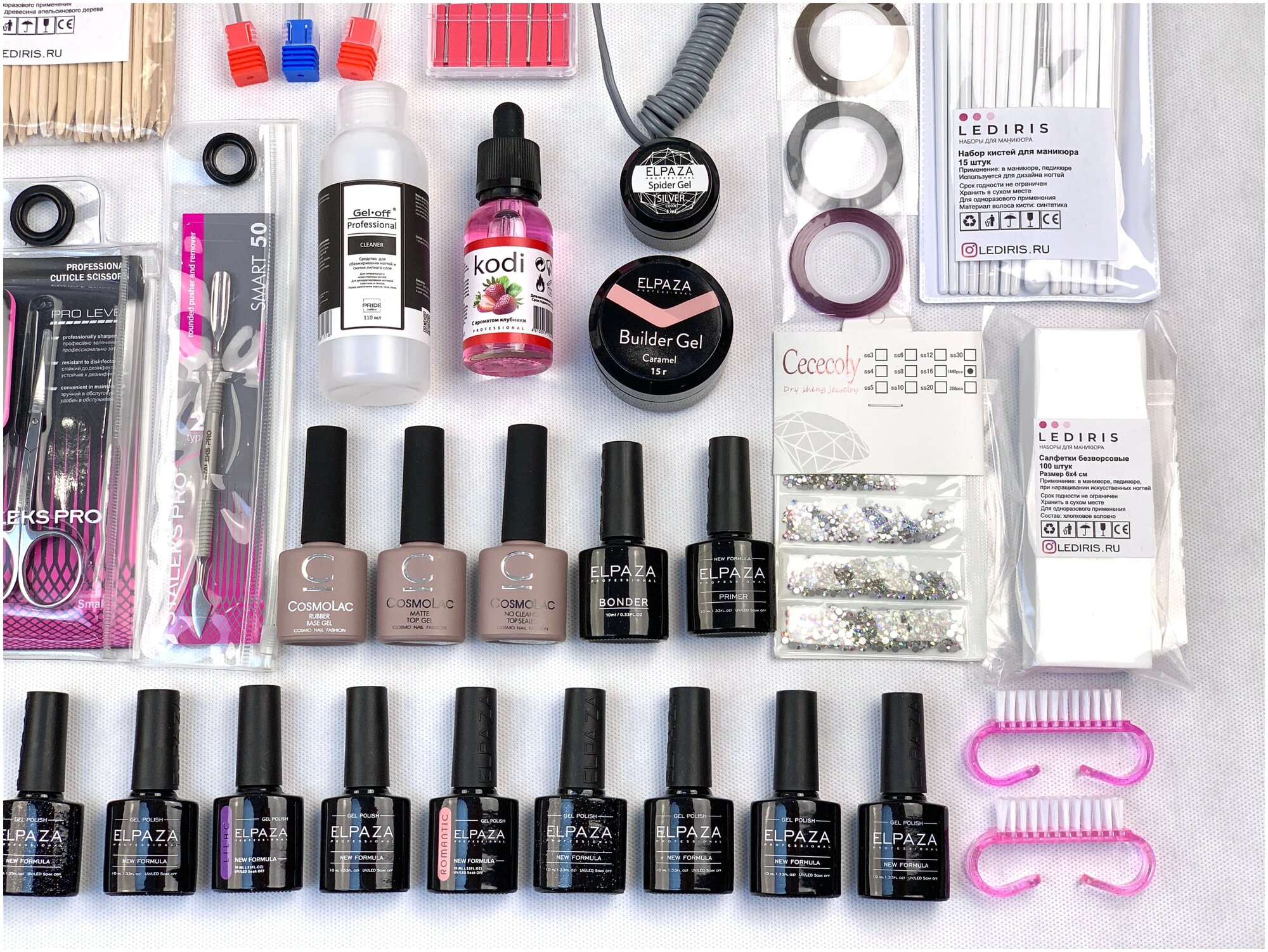 Купить Профессиональный Набор для маникюра с 15 гель-лаками Elpaza, лампой для маникюра, аппаратом для маникюра и дизайнами / "Всё включено" от LEDIRIS