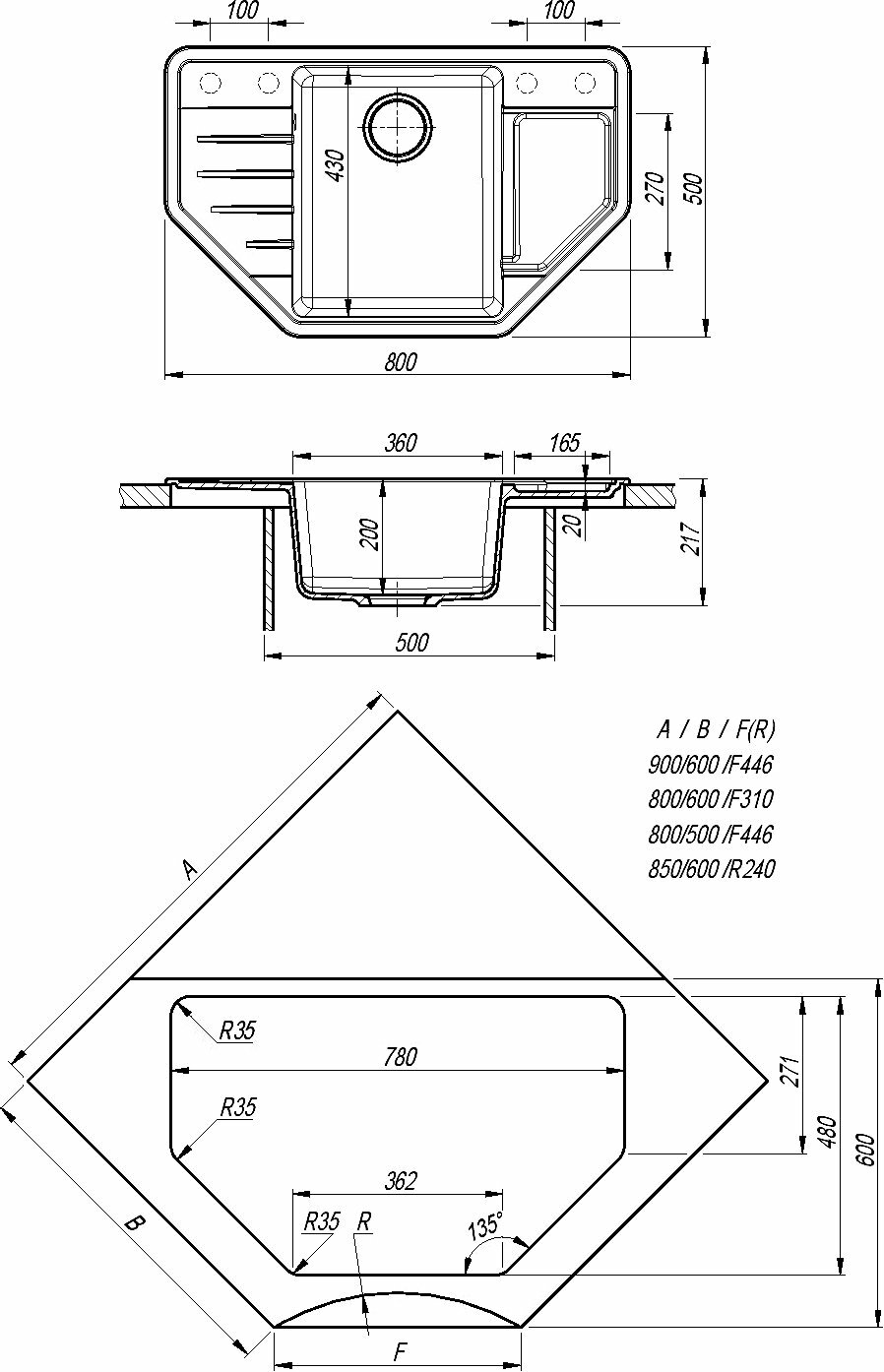 Мойка кухонная угловая Dr. Gans Рио Чёрный (25.080.C0800.407)