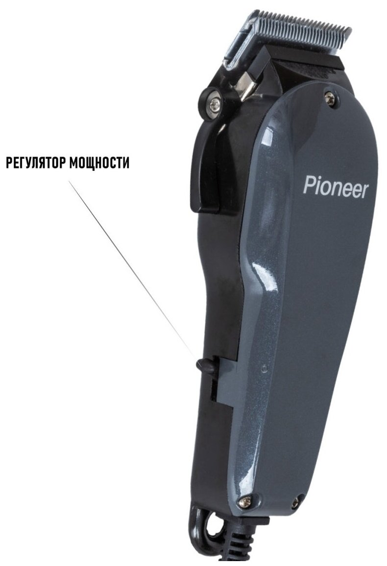 "Машинка для стрижки Pioneer сетевая, стальные лезвия, 4 сменные насадки 3 мм, 6 мм, 9 мм, 12 мм, регулировка длины стрижки и мощности, 10 Вт"