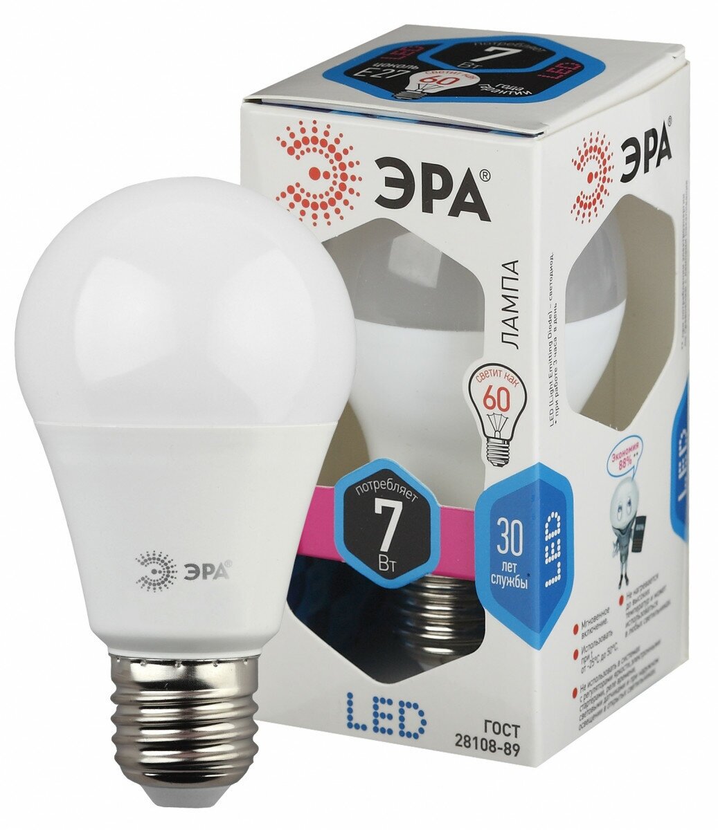 Лампа светодиодная Эра LED smd A60-7W-840-E27 4000k нейт.бел. ст.колба интересное: