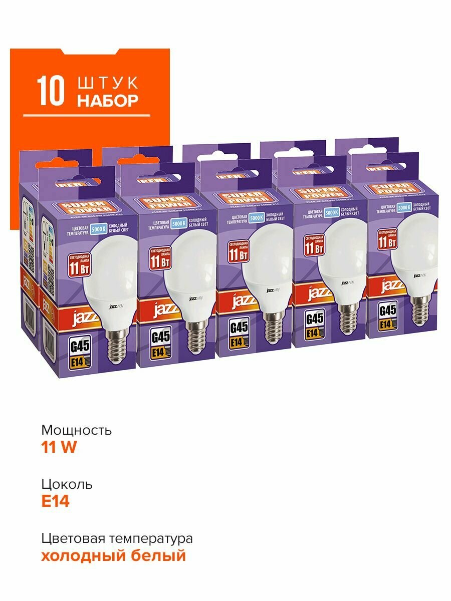 Набор из 10 светодиодных ламп Jazzway PLED-SP G45 11w E14 5000K интересное: