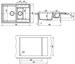 Flortek кухонная мойка консул 760K Чёрный 23.025.D0760.102