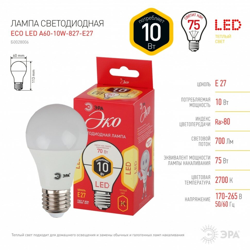 Ниже Вы можете прочитать отзывы на ЭРА Лампа светодиодная E27 10Вт ЭРА ECO LED A60-10W-827-E27, ознакомится с подробными характеристиками, посмотреть интересные обзоры и фотографии на ЭРА Лампа светодиодная E27 10Вт ЭРА ECO LED A60-10W-827-E27.
