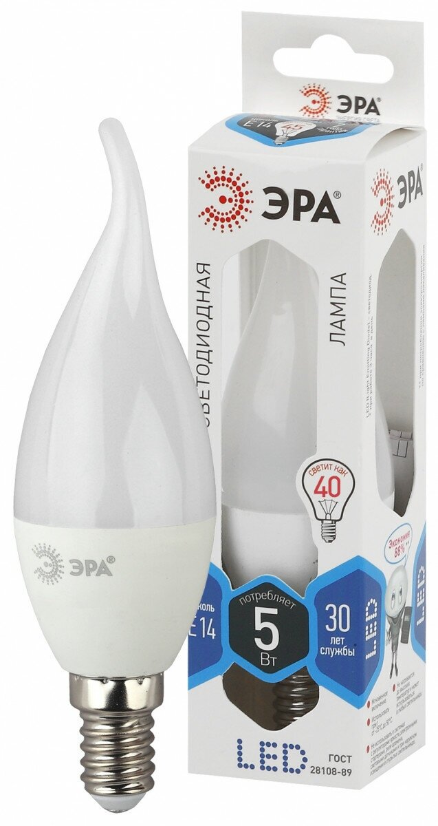 Светодиодная лампа ЭРА LED BXS-5W-840-E14, свеча на ветру, нейтральный Б0027968