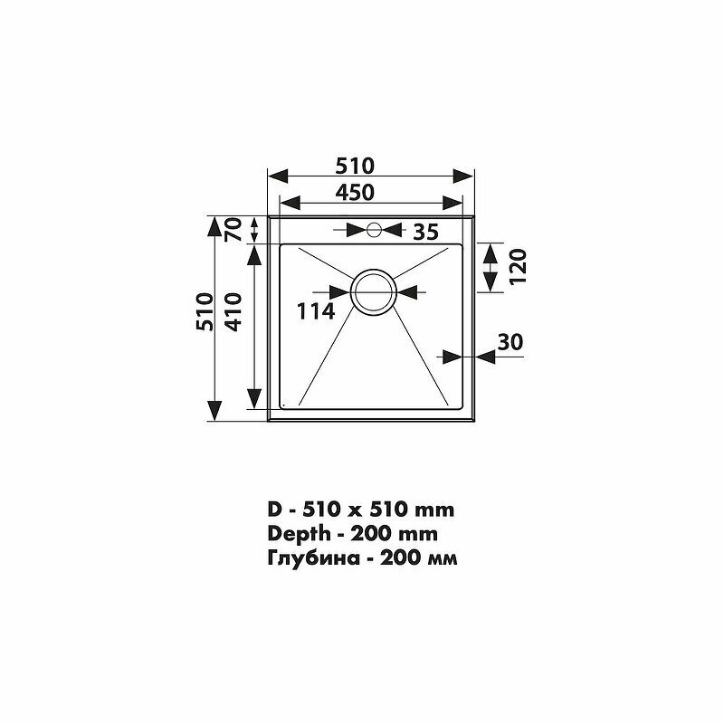 Мойка кухонная KAISER 51x51x20 сталь KSM-5151