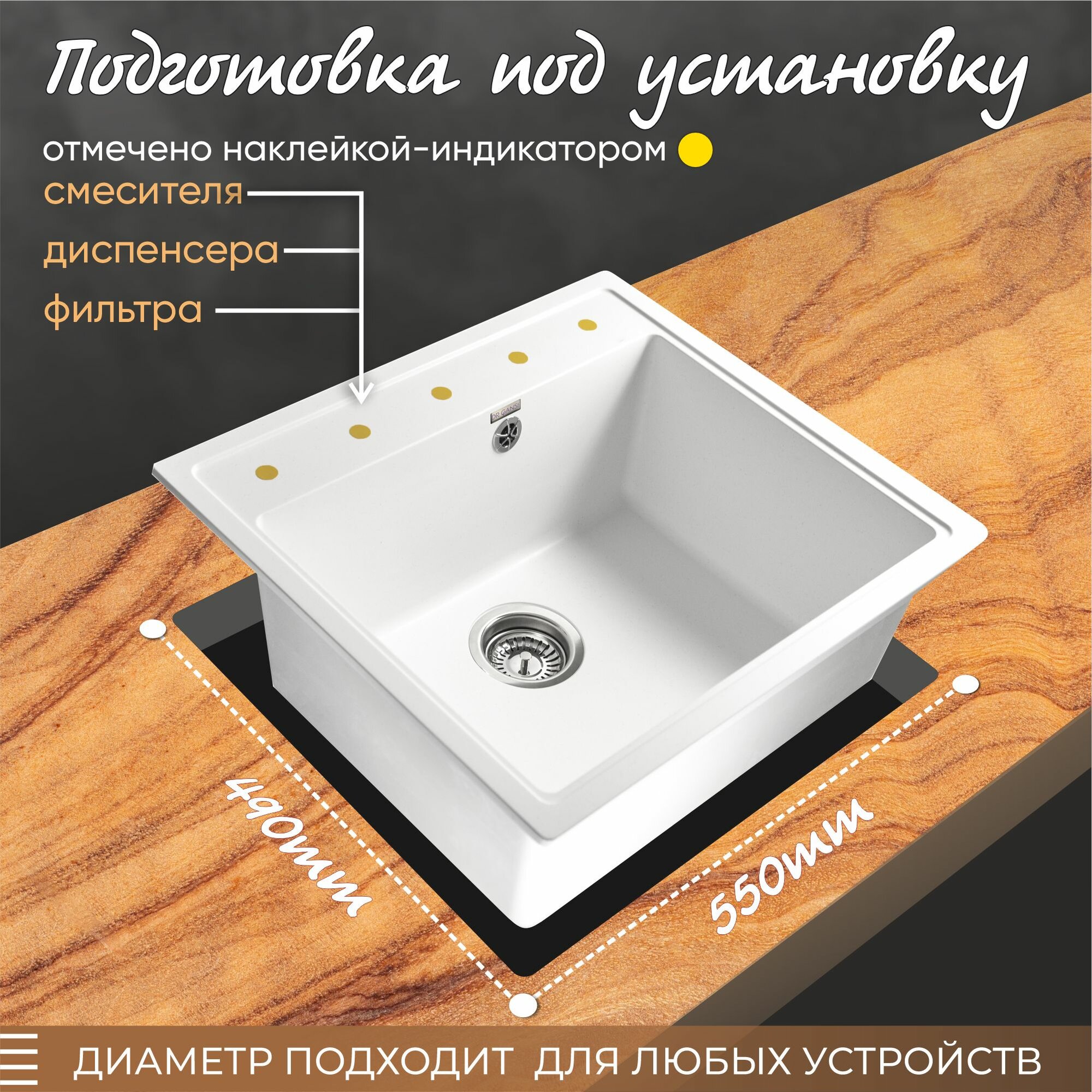 Мойка для кухни врезная каменная Dr. Gans НИКА-570, цвет белый, прямоугольная, 570х510х217 мм