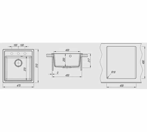 Мойка для кухни врезная каменная Dr. Gans НИКА-470, цвет серый, квадратная, 470х510х217 мм