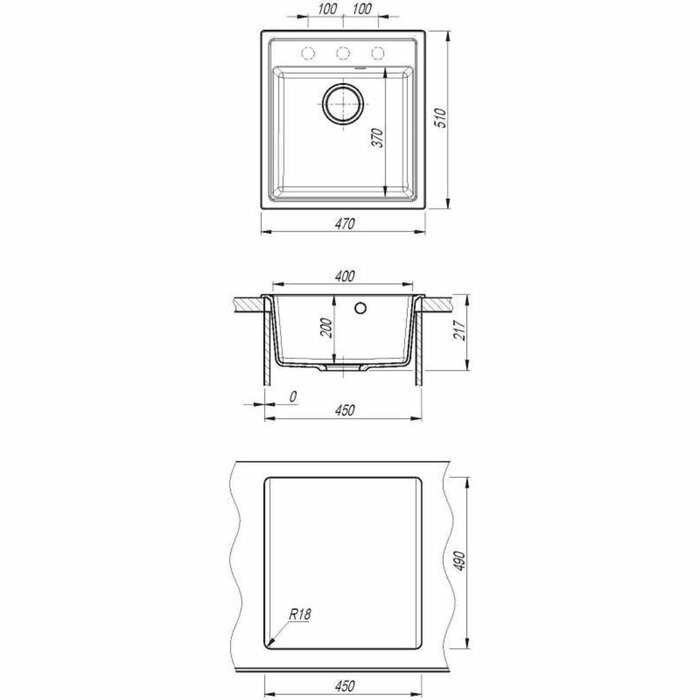 Мойка кухонная из камня Dr.Gans Ника-470, 470х510 мм, цвет чёрный Dr.Gans 1486666