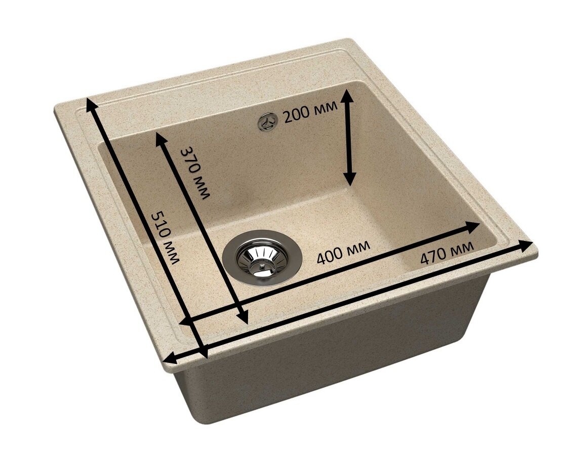 Мойка для кухни врезная каменная Dr. Gans НИКА-470, цвет латте, квадратная, 470х510х217 мм