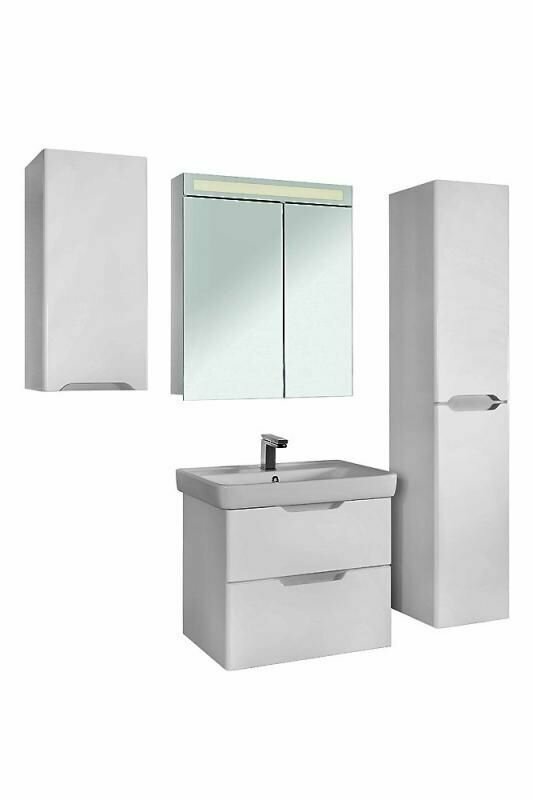 Тумба с раковиной в ванную Q80 Dreja, белый глянец(Тумба Q80 подвесная+раковина Q80)