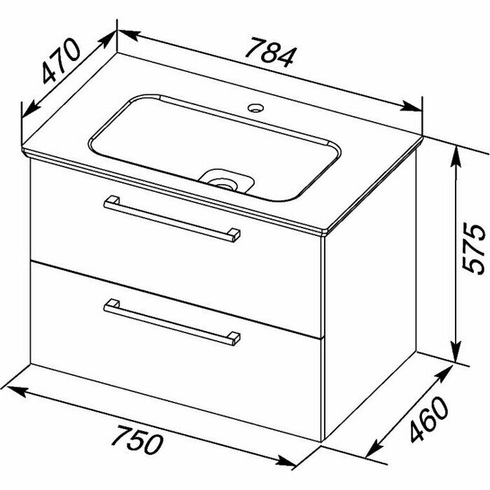 Тумба подвесная Dreja Gio 80, 2 ящика, белый глянец 77.0103W