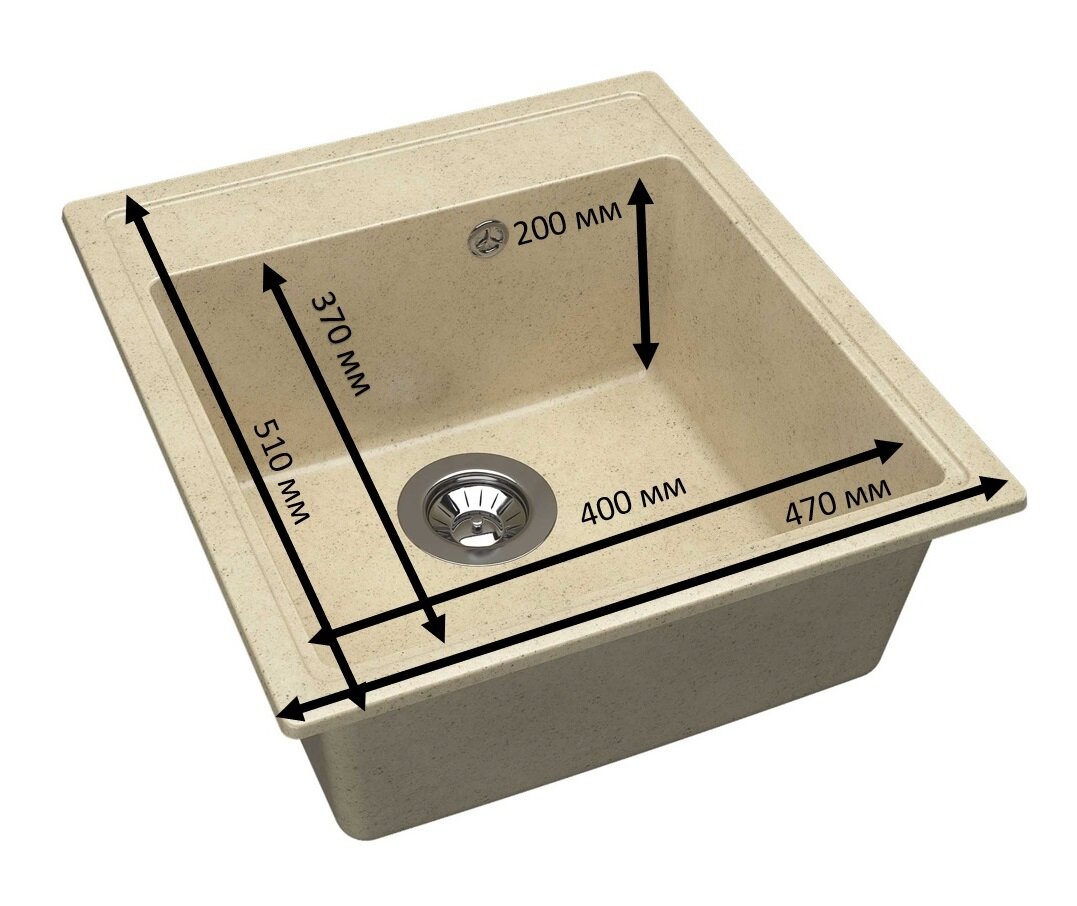 Мойка для кухни врезная каменная Dr. Gans НИКА-470, цвет латте, квадратная, 470х510х217 мм