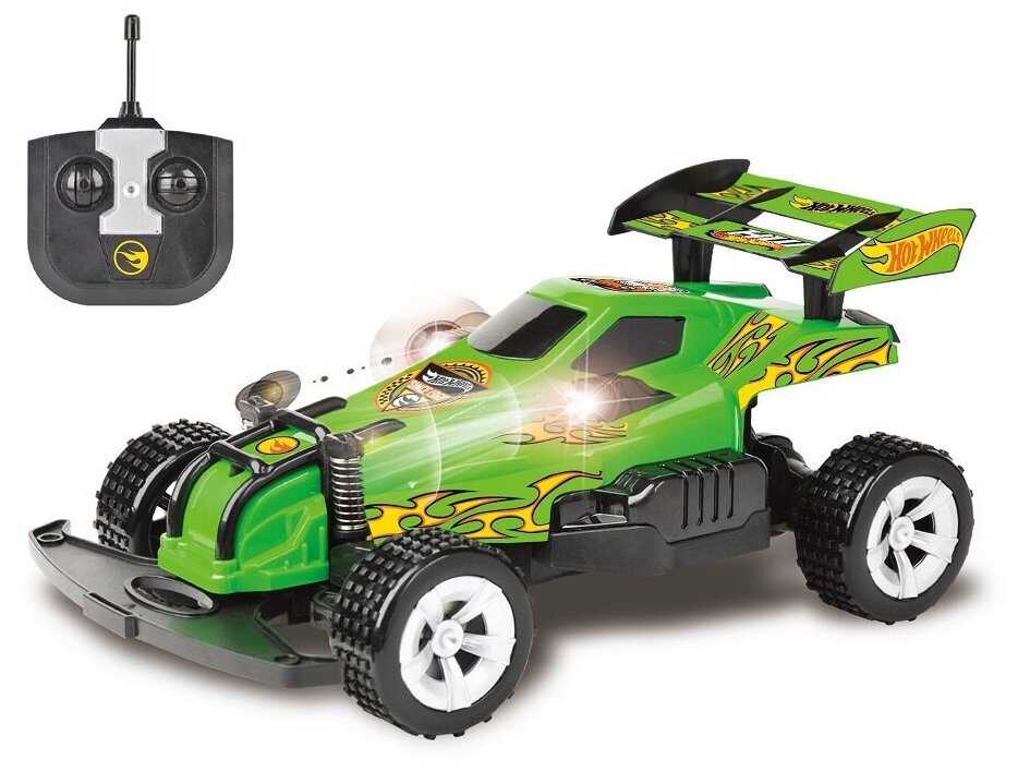 Hot Wheels машинка багги на р/у, 1:20,скорость - 14км/ч, со светом, на батарейках, зелёная