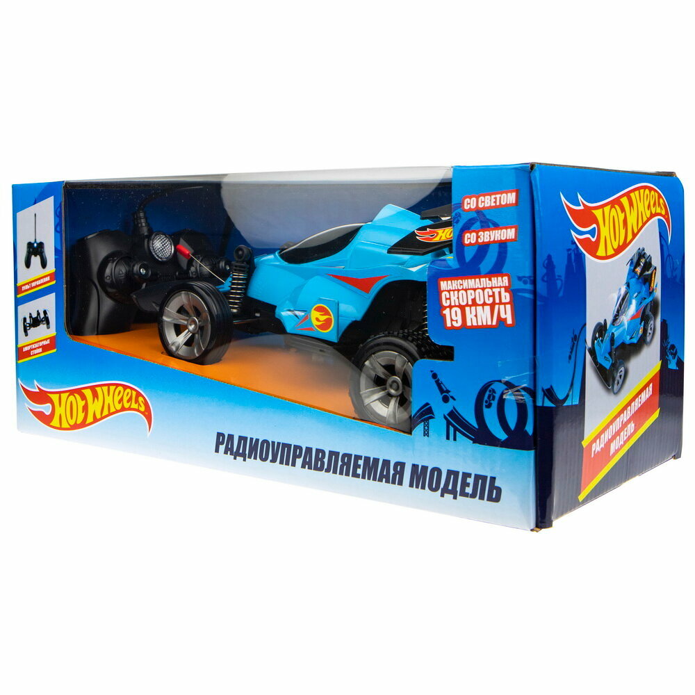 Купить Hot Wheels багги на р/у, масштаб 1:20, cо светом и звуком, скорость до 19км/ч, с АКБ, синяя