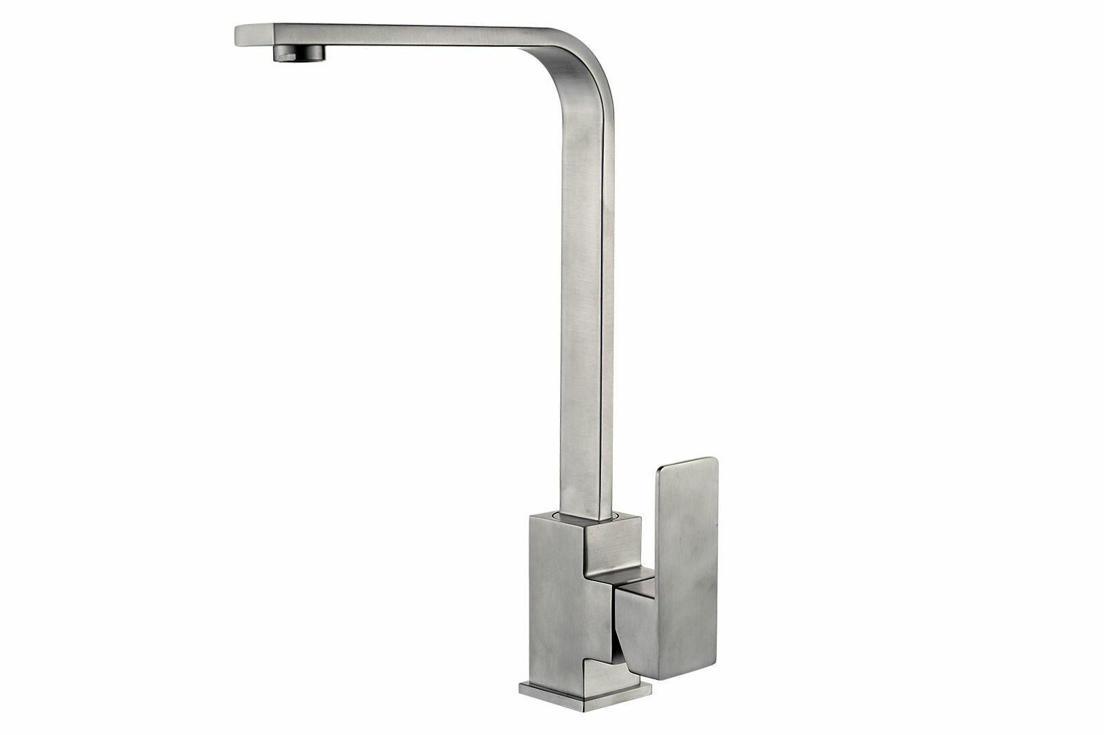 Смеситель для кухни ZorG SH 5104 INOX, нержавеющая сталь матовый, квадратный, хай-тек, поворотный, защита от брызг