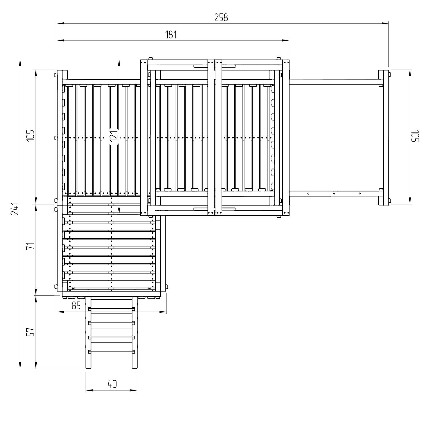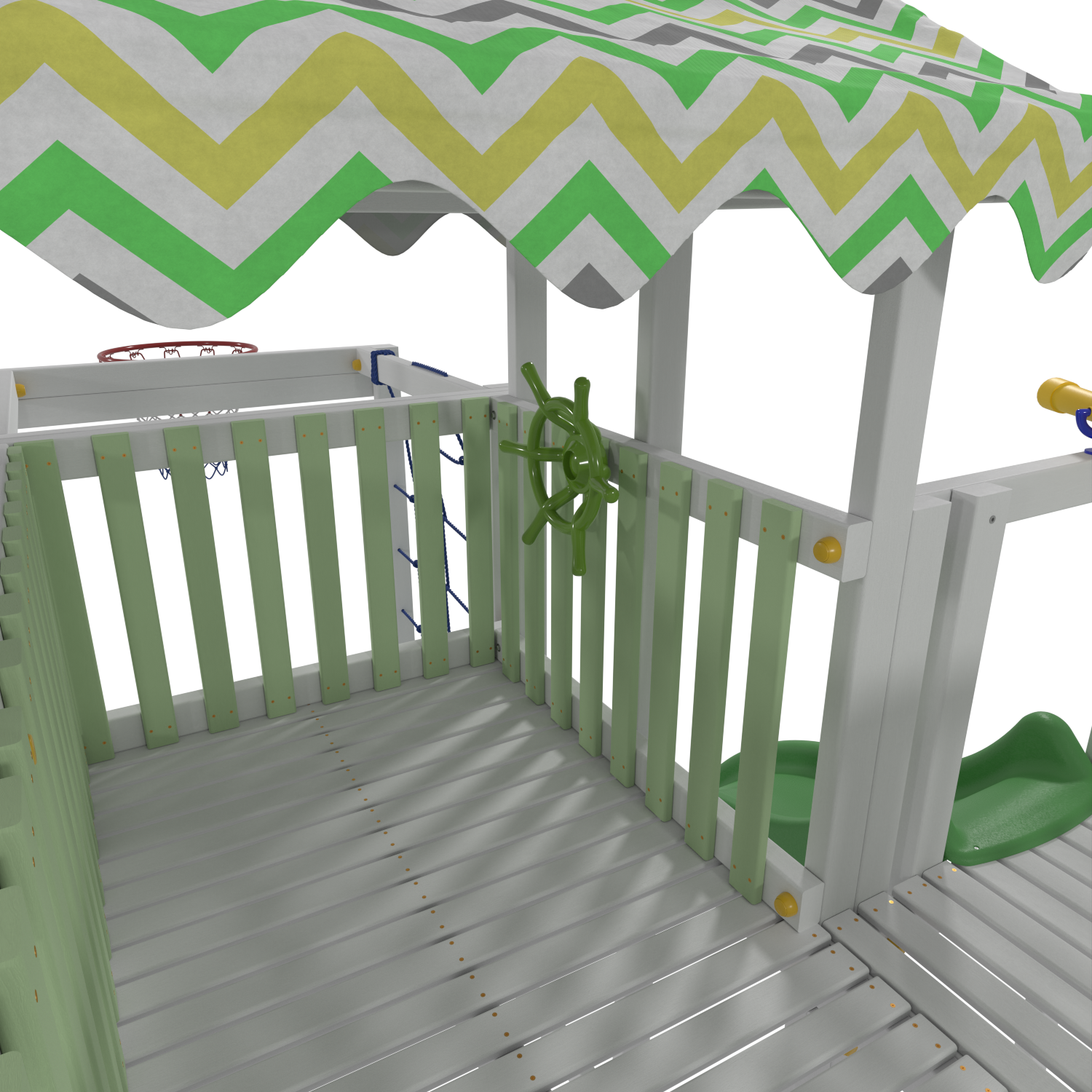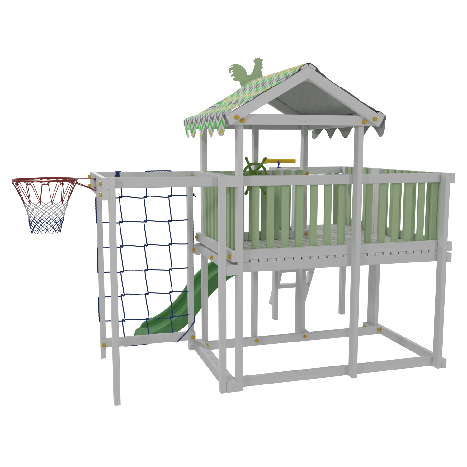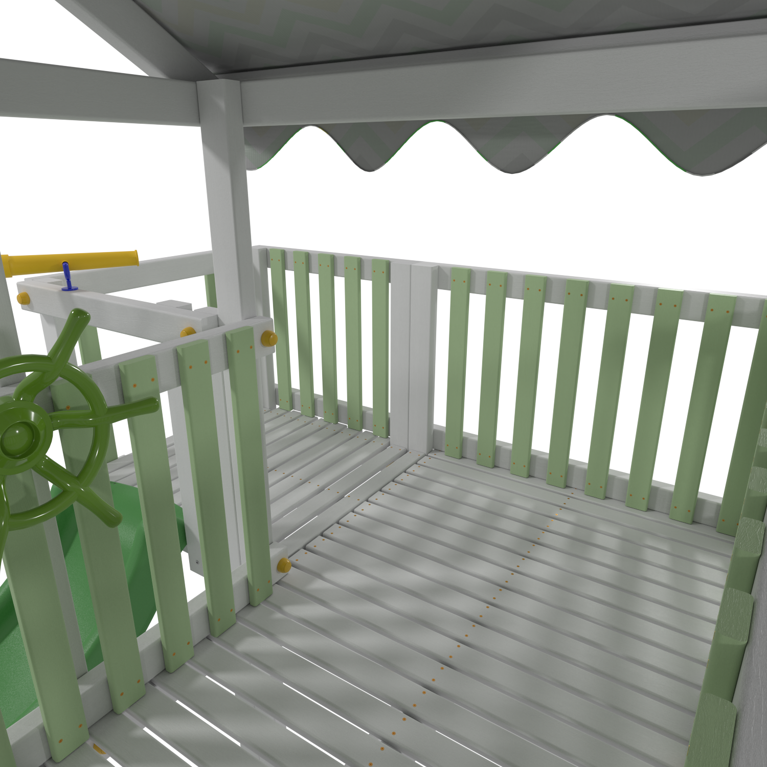 | Комплектация | - каркас с кроватью; - горка; - сетка для лазания; - лестница; - баскетбольное кольцо; - перископ; - штурвал. |