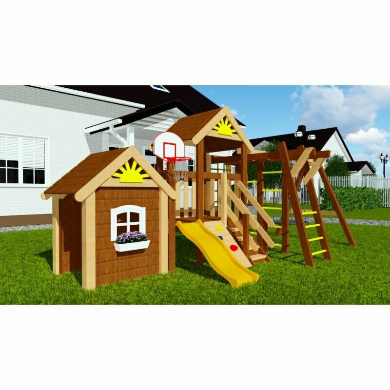 | В комплекте | баскетбольное кольцо, горка, качели, лестница, рукоход, сетка для лазания, скалолазная стенка |
