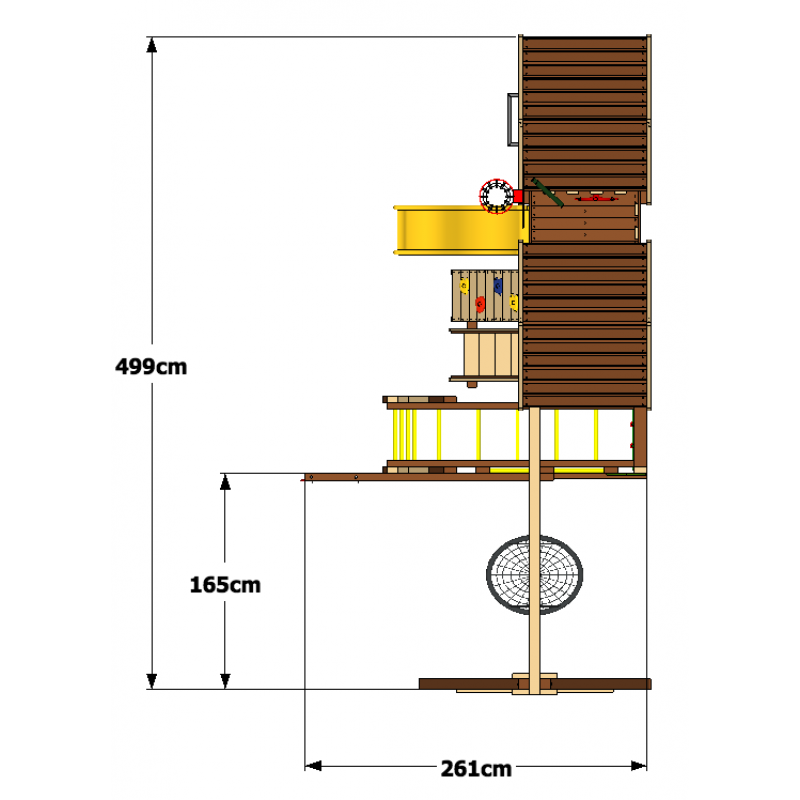 | Дополнительная информация | в комплектацию так же входят: штурвал, подзорная труба, домик, двойная шведская стенка, доска для рисования, цветочница; размер комплекса: 499 х 261 см |