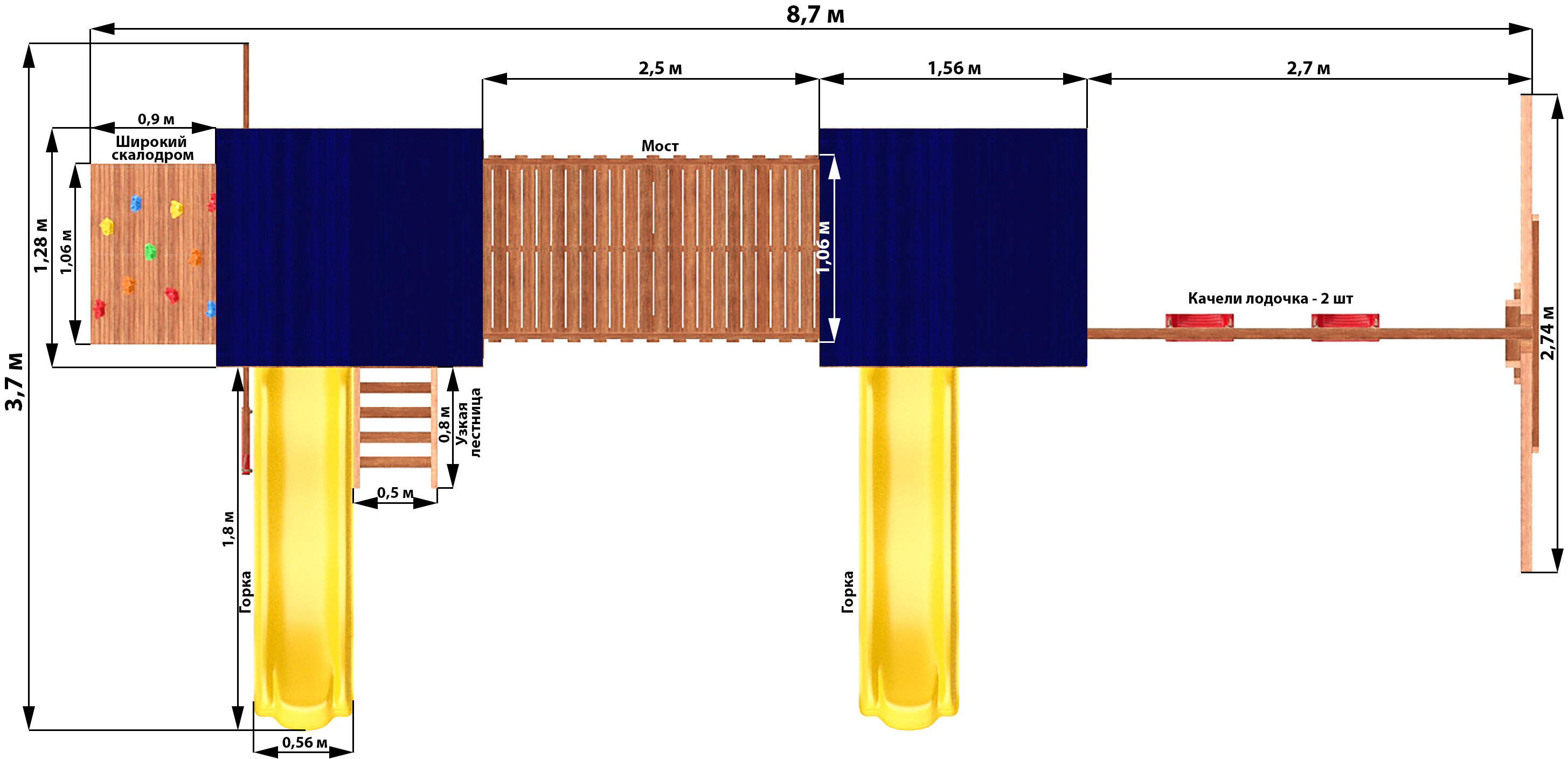 Детская площадка капризун Спортивный городок 6 крыша тент с качелями и широким скалодромом