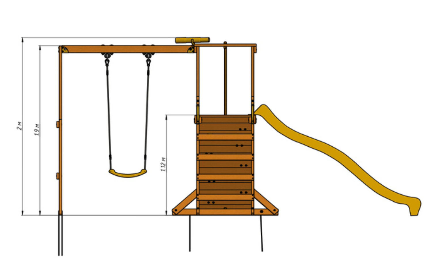 | В комплекте | качели, горка, лестница, скалолазная стенка |