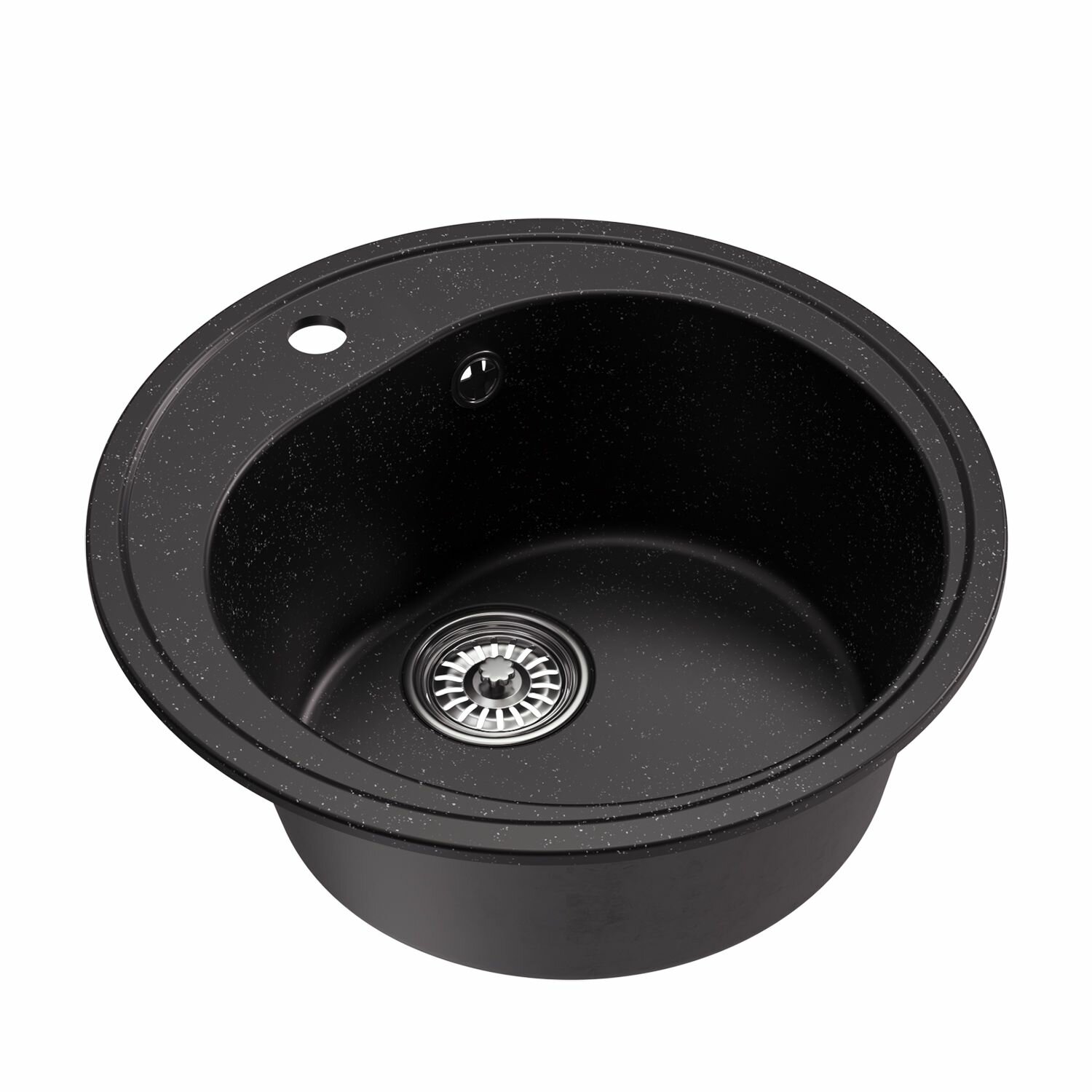 Мойка для кухни из искусственного мрамора круглая, с сифоном, MIXLINE ML-GM 11, ультра черная