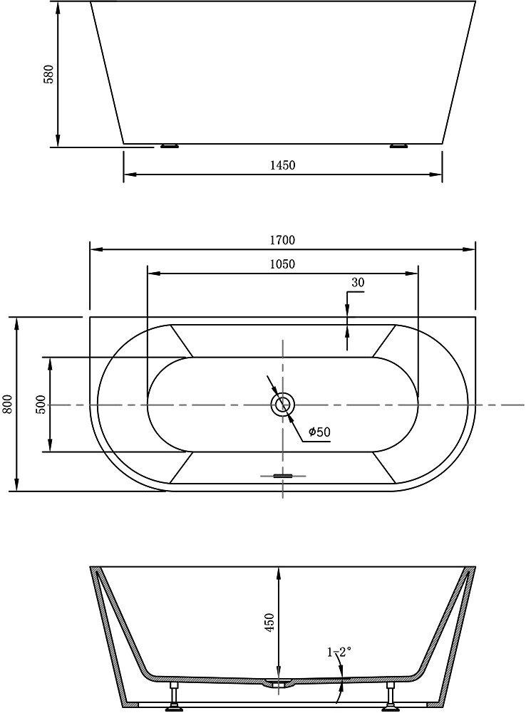 Отдельностоящая ванна Vincea VBT-421-1700MB, 1700x800x580