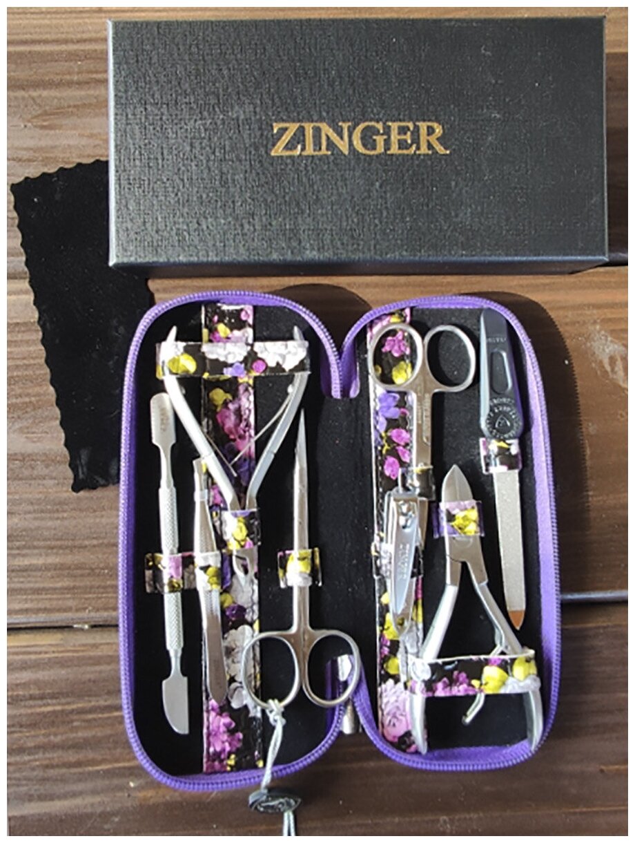 Купить Маникюрный набор, ZINGER, MS-7106, 8 предметов, чехол цветы, фиолетовый