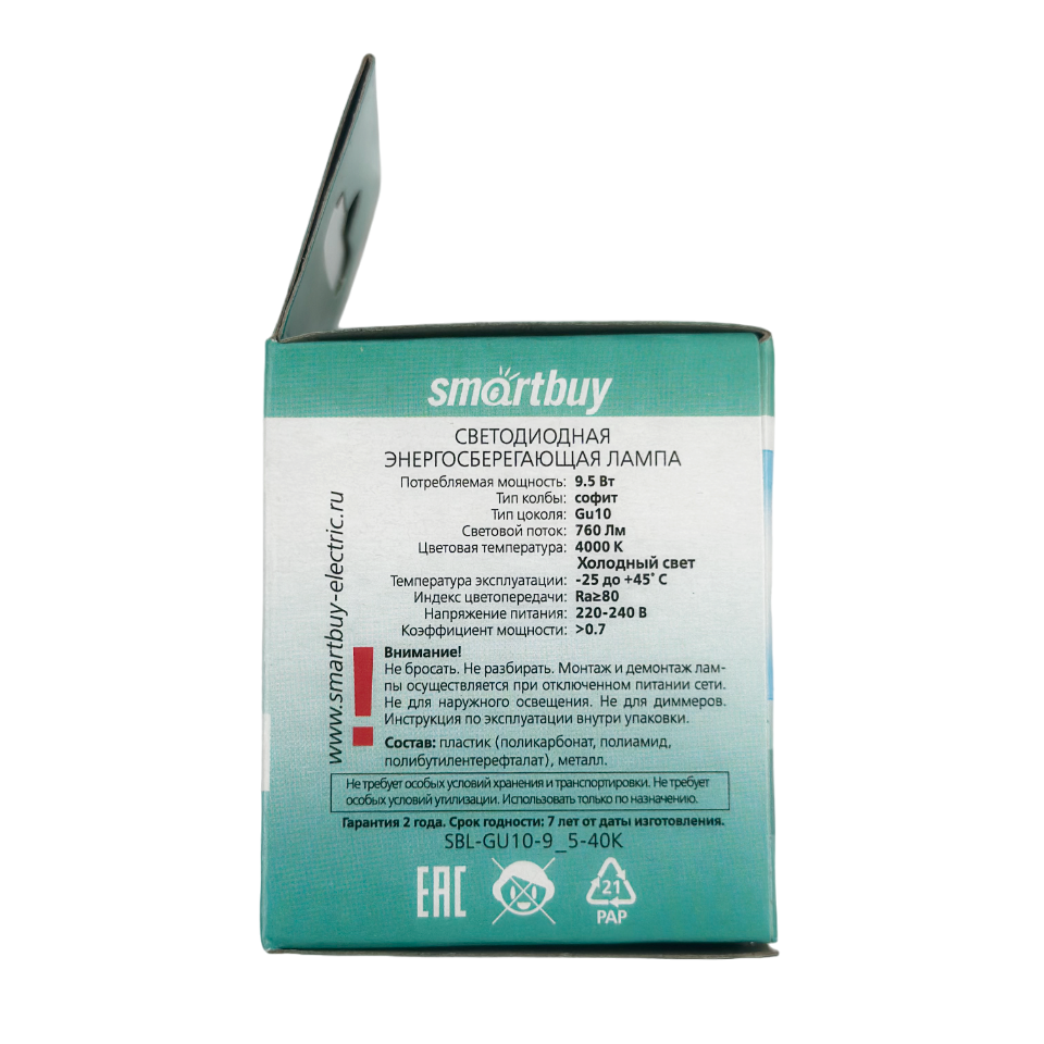 Лампа светодиодная Smartbuy SBL-GU10-9_5-40K интересное: