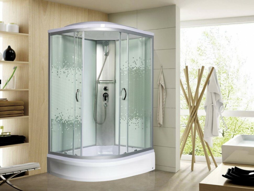 Душевая кабина Мономах 10000005820 с крышей , профиль хром , стекло прозрачное с рисунком мозаика