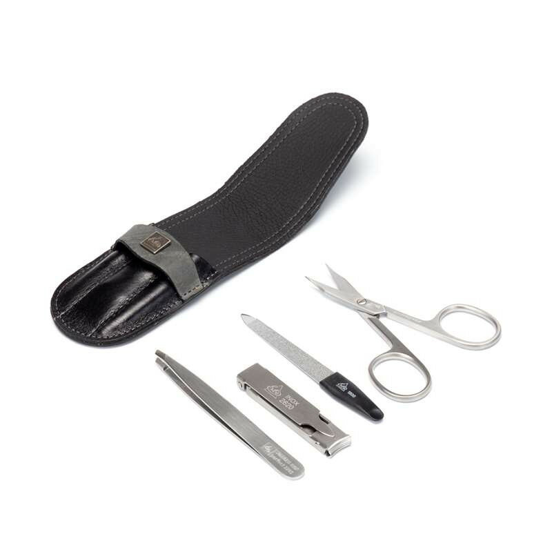 Erbe 9109ER Маникюрный набор, 4пр. футляр: натур.кожа, цвет черный/серый,erbe
