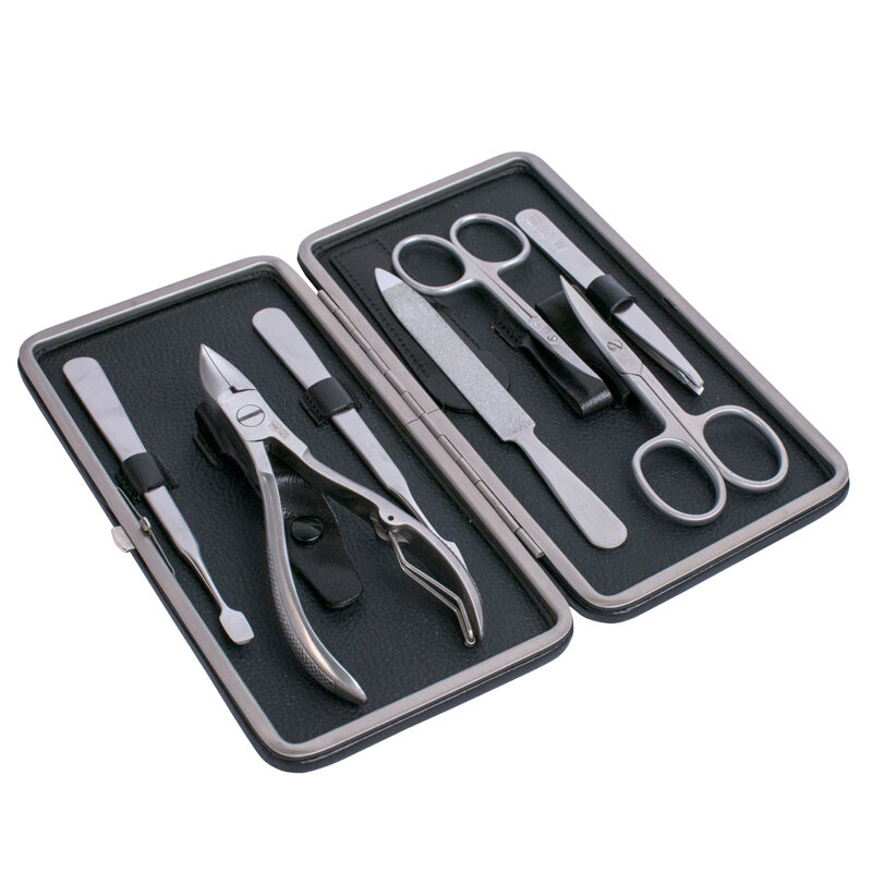 Маникюрный набор Erbe, 7пр. Футляр: натур. кожа, цвет черный