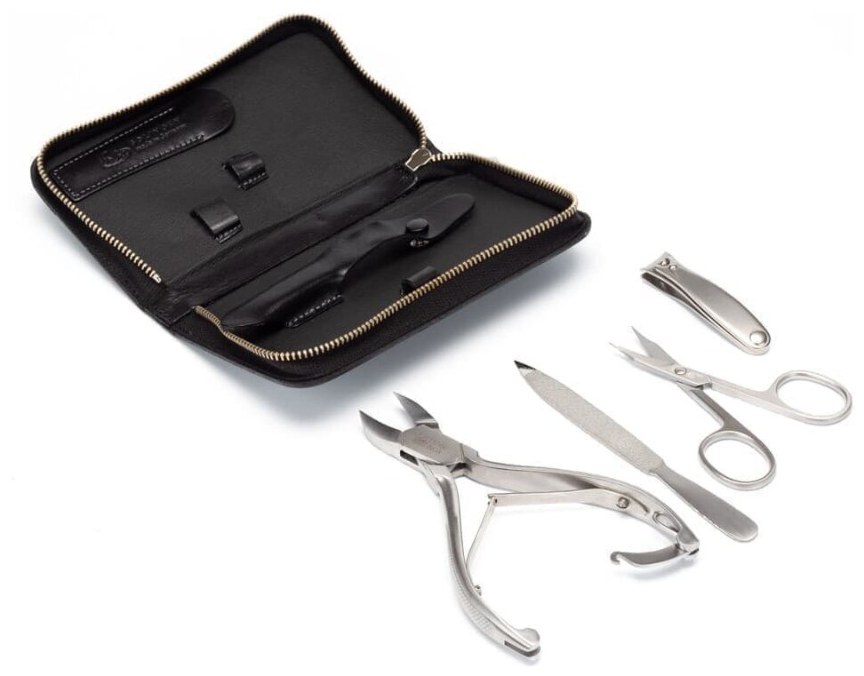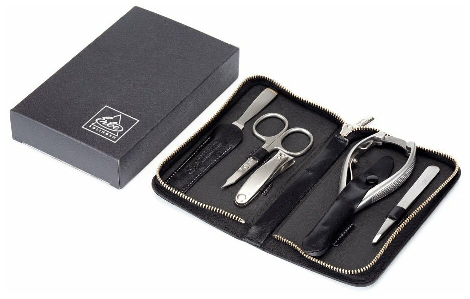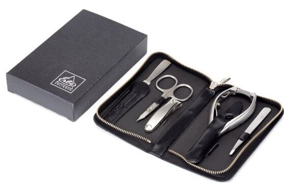 Маникюрный набор Erbe, 5пр. Футляр: натур.кожа, цвет черный/серый Erbe MR-9167ER интересное:
