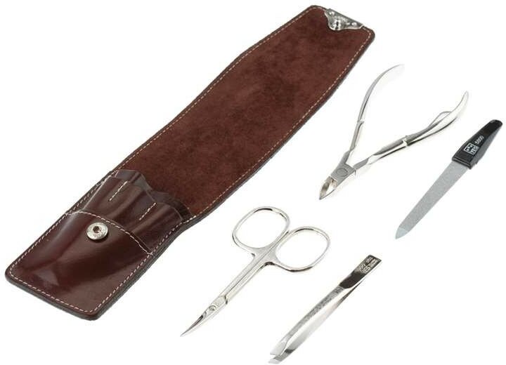 Маникюрный набор YES, 4 пр. Футляр: натуральная кожа, цвет коричневый