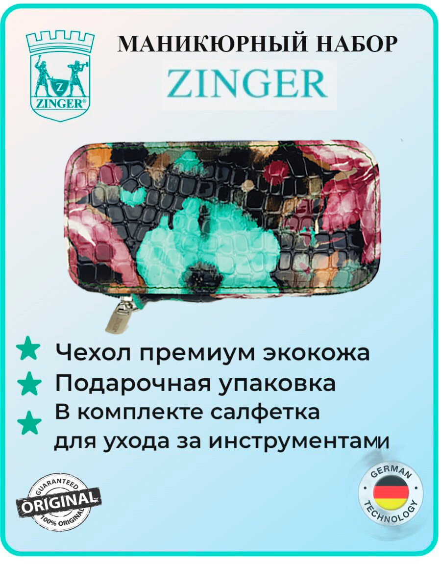 Маникюрный набор, ZINGER, MS-7105, 7 предметов, чехол цветы