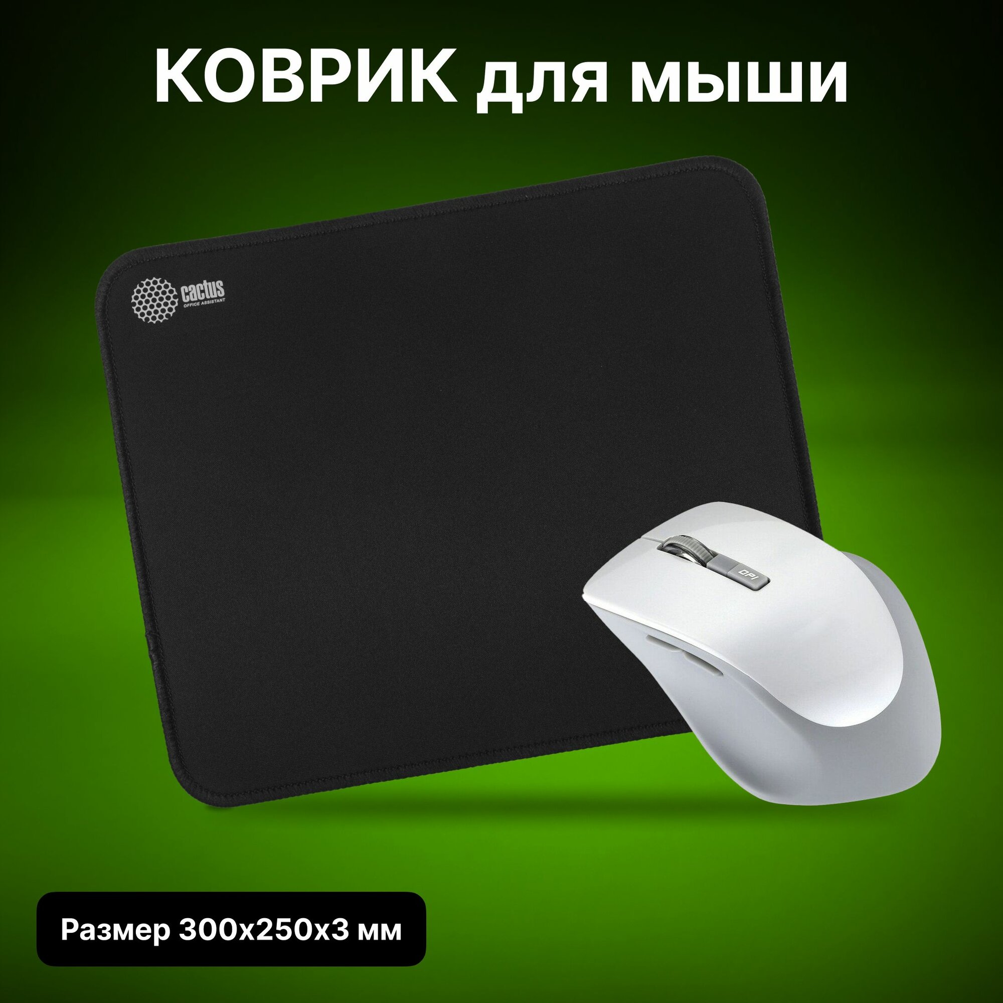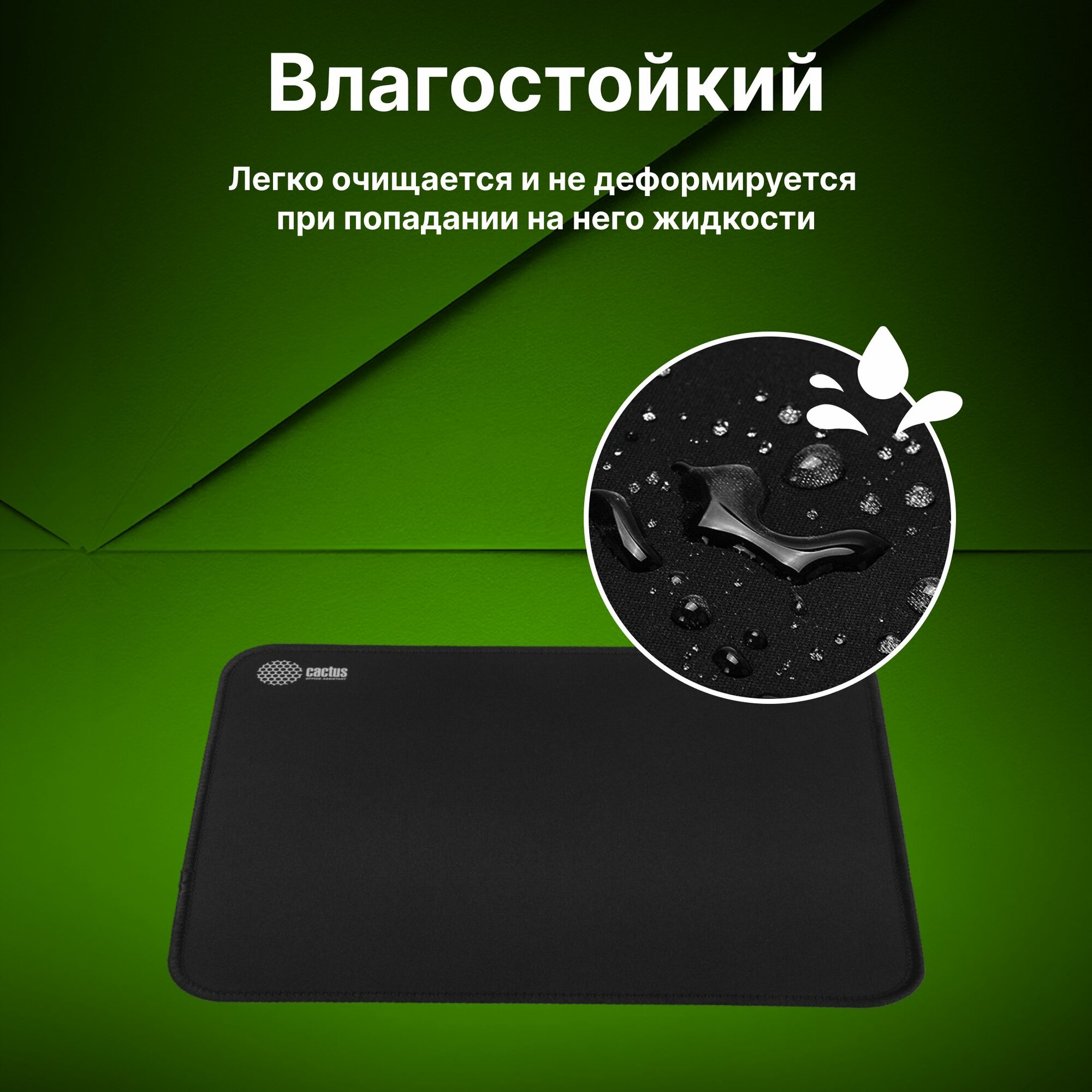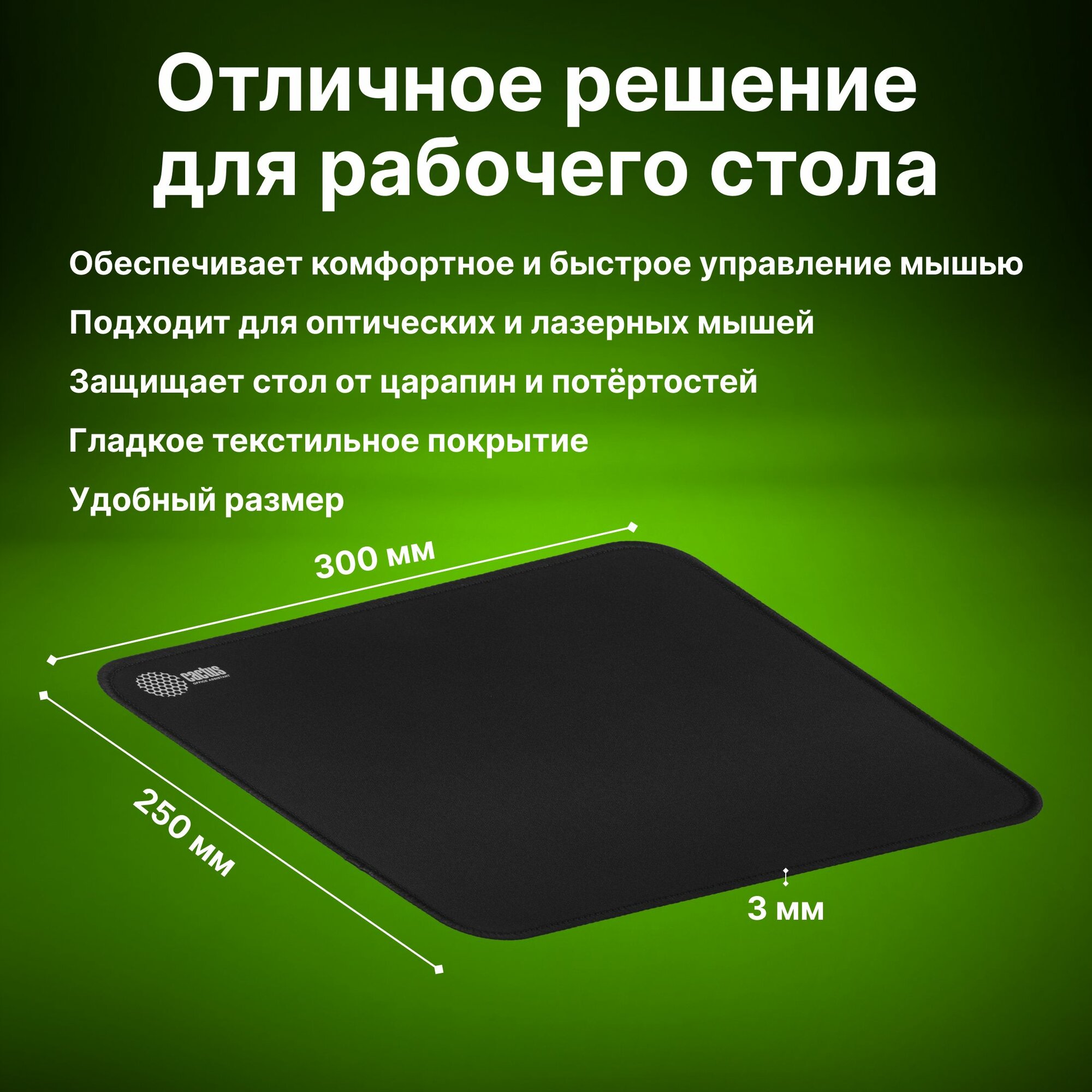 Коврик для мыши Cactus Black, черный, 300x250x3 мм