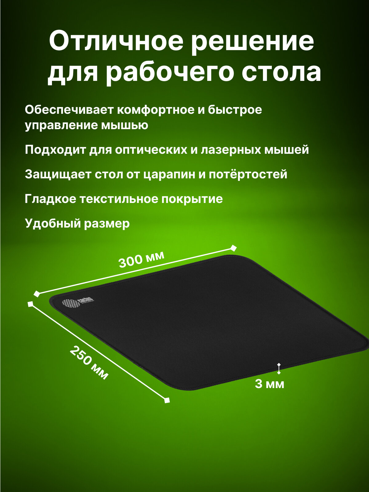 | Плюсы: | Отличный коврик, оптимальный размер для среднего стола, края прошиты |