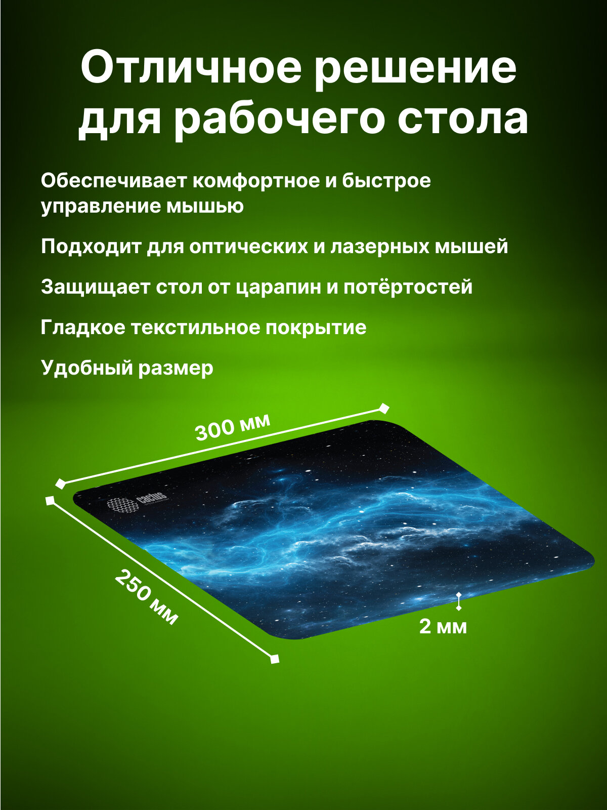 Коврики для мыши CACTUS Коврик для мыши Cactus Space Clouds, 300х250х2 мм, черный