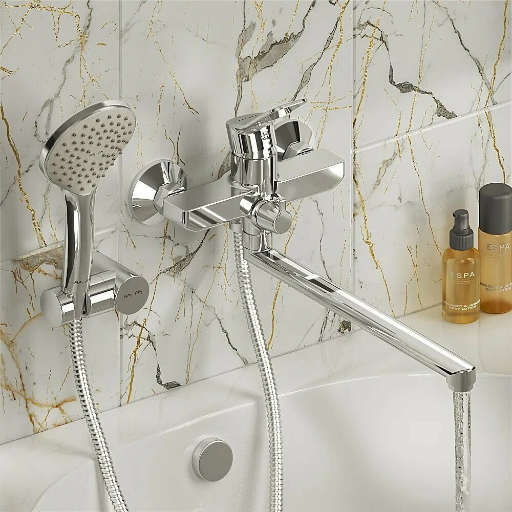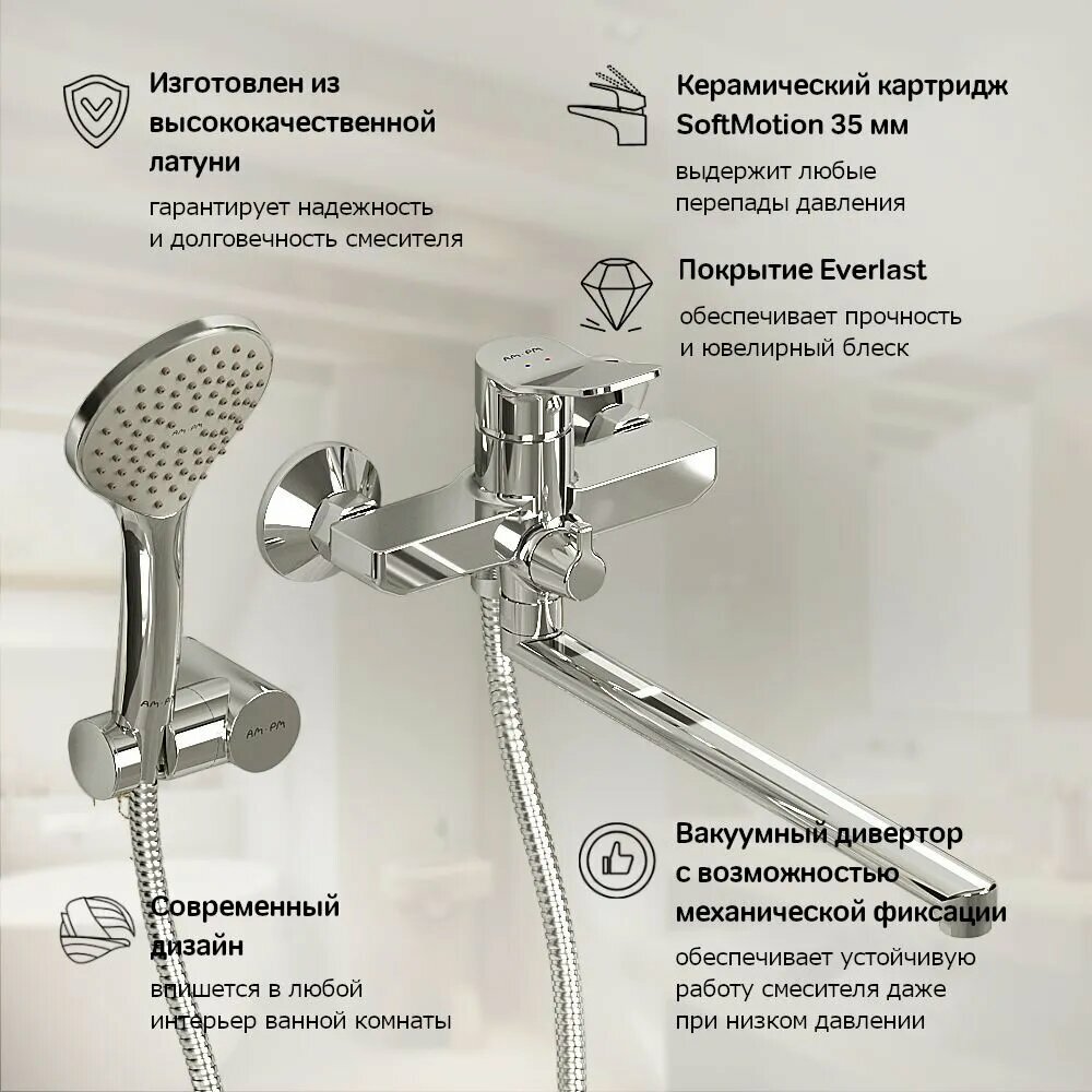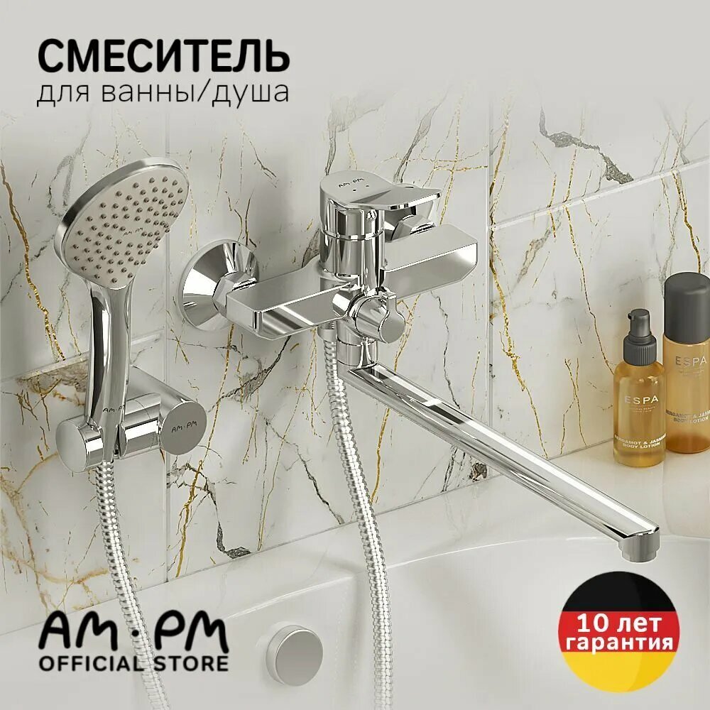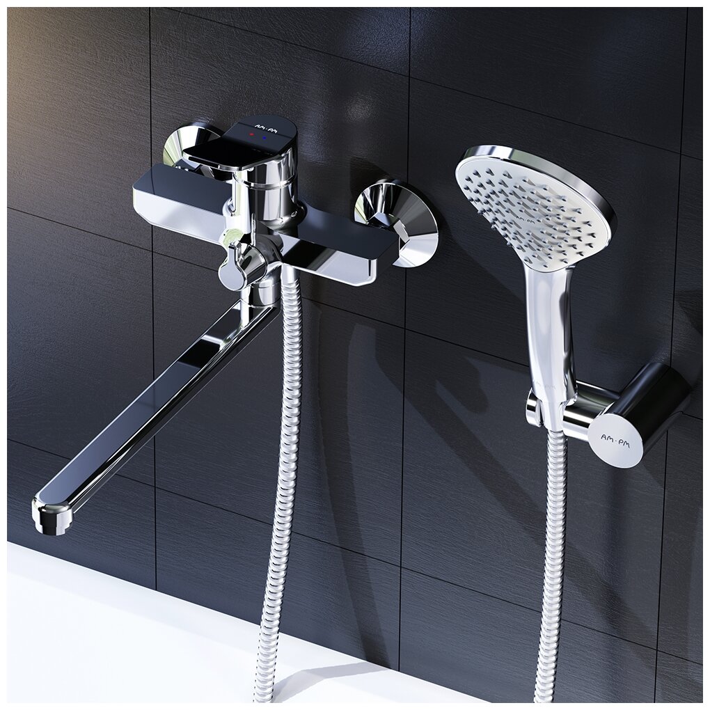 Смеситель для ванны и душа AM.PM Brava F88A95000 с душевым набором, универсальный излив интересное: