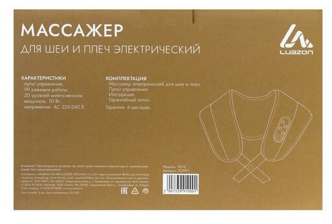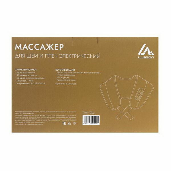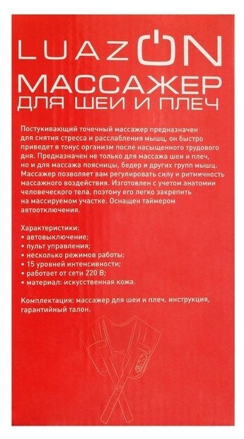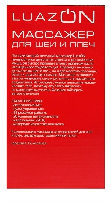 Массажер для спины и шеи Luazon Home 9016, наплечный, пульт, 99 режимов интересное: