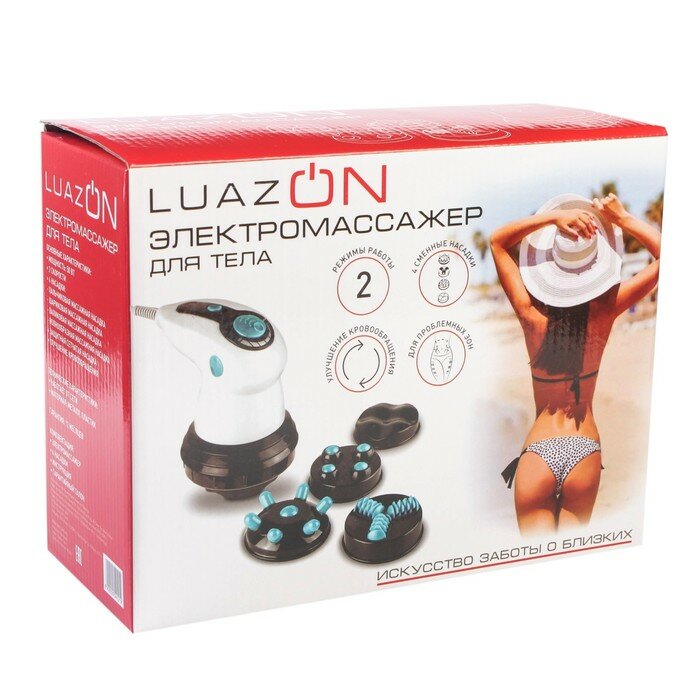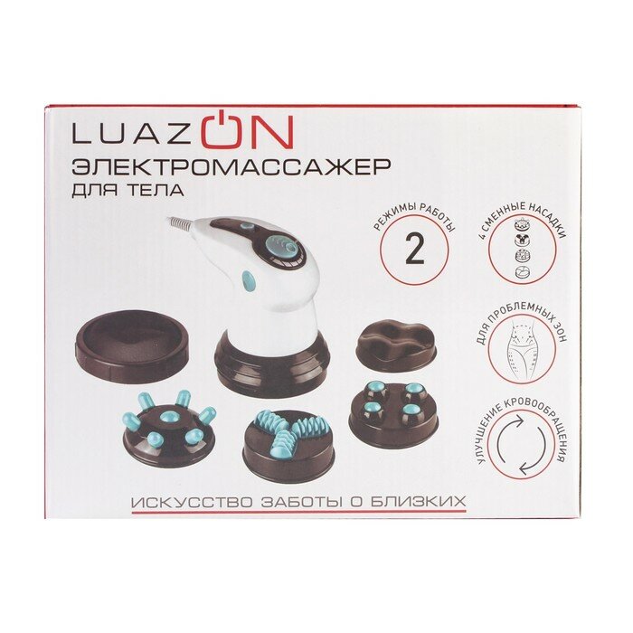 Luazon Home Массажёр для тела Luazon LEM-34, антицеллюлитный, 2 режима, 5 насадок, 220 В, белый интересное: