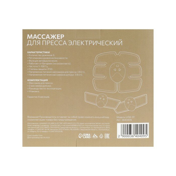 Массажёр для пресса и рук Luazon LEM-37, 6 режимов, 3 пульта, 6хААА (не в компл.), чёрный интересное:
