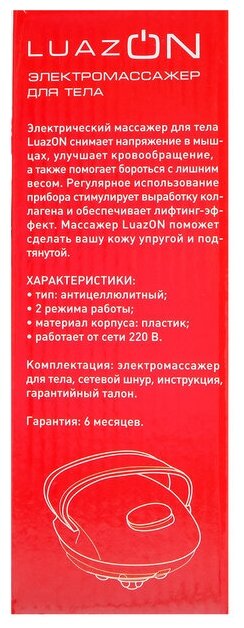 Массажер для тела LuazON LEM-045, антицеллюлитный, 2 режима, 220 В, белый./В упаковке шт: 1 интересное:
